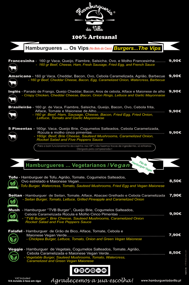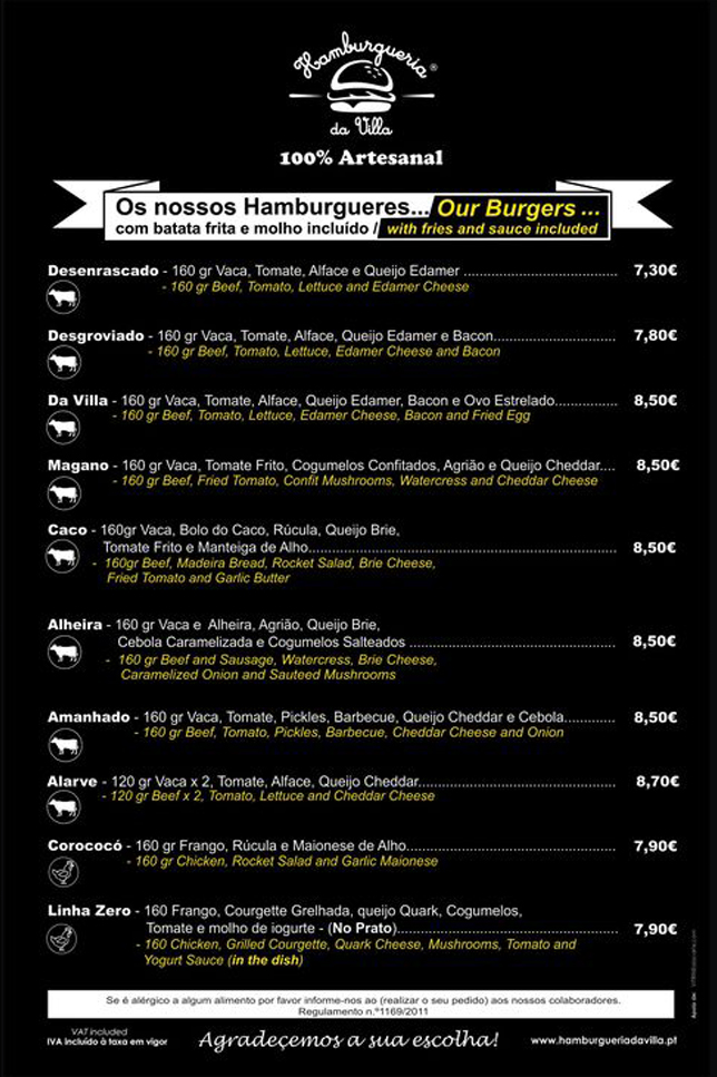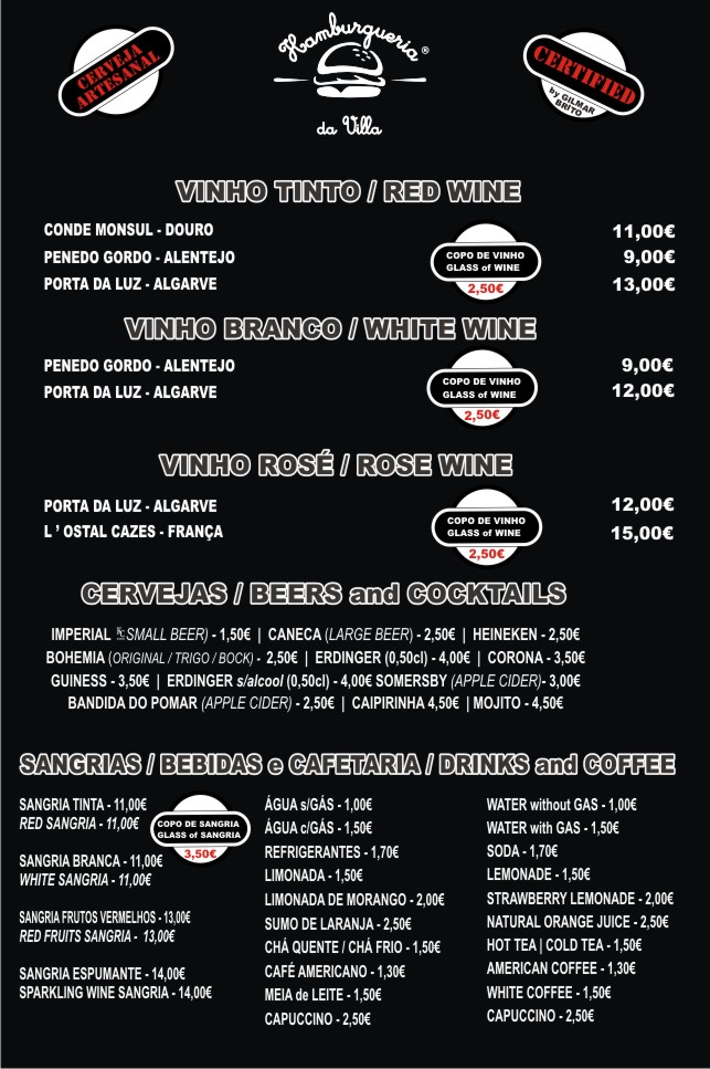 HAMBURGUERIA da VILLA was born here 5 years ago, to make known to the countrymen of São Brás de Alportel or to those outside the flavors of the world. Every day comes the most succulent meat and fresh ingredients from our Local Producers, our very fresh bread in the morning that is enhanced with natural products and sauces without additives and without concentrates ... yes, we know it takes work ... but come and taste the flavor!